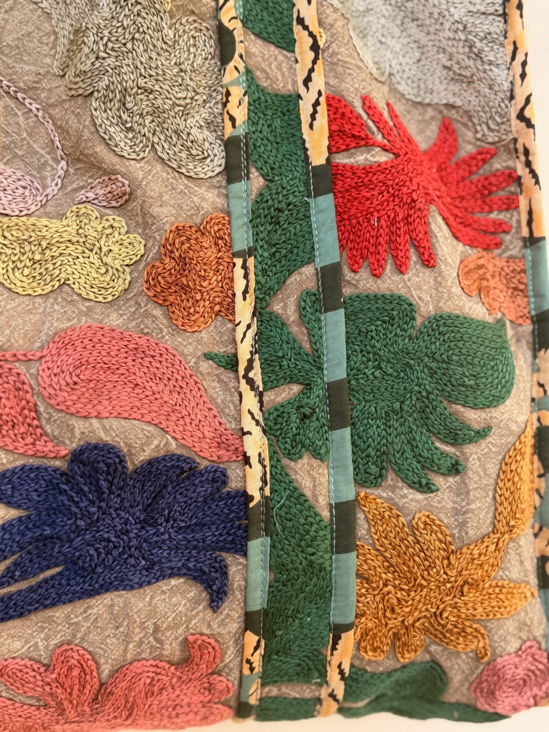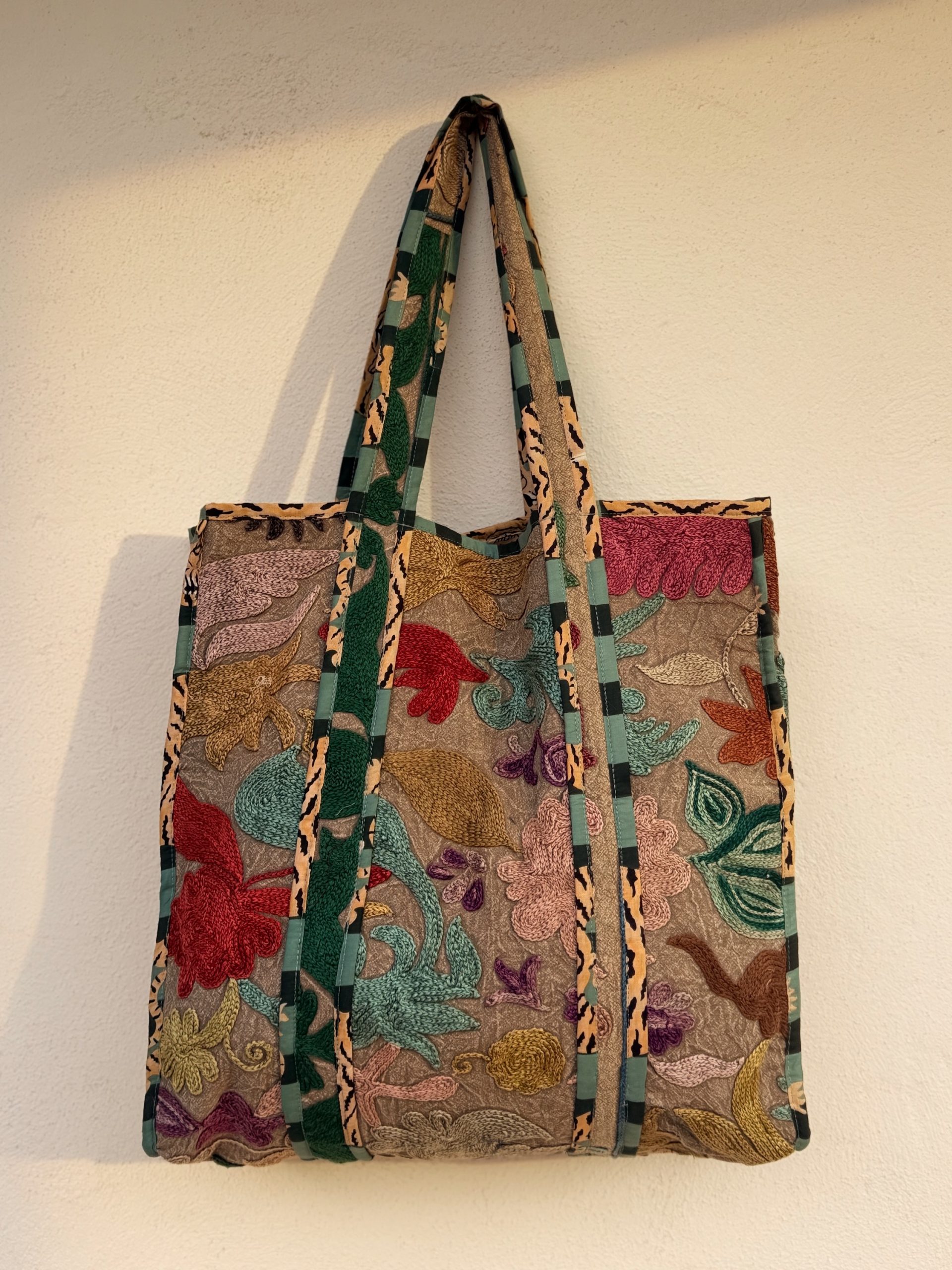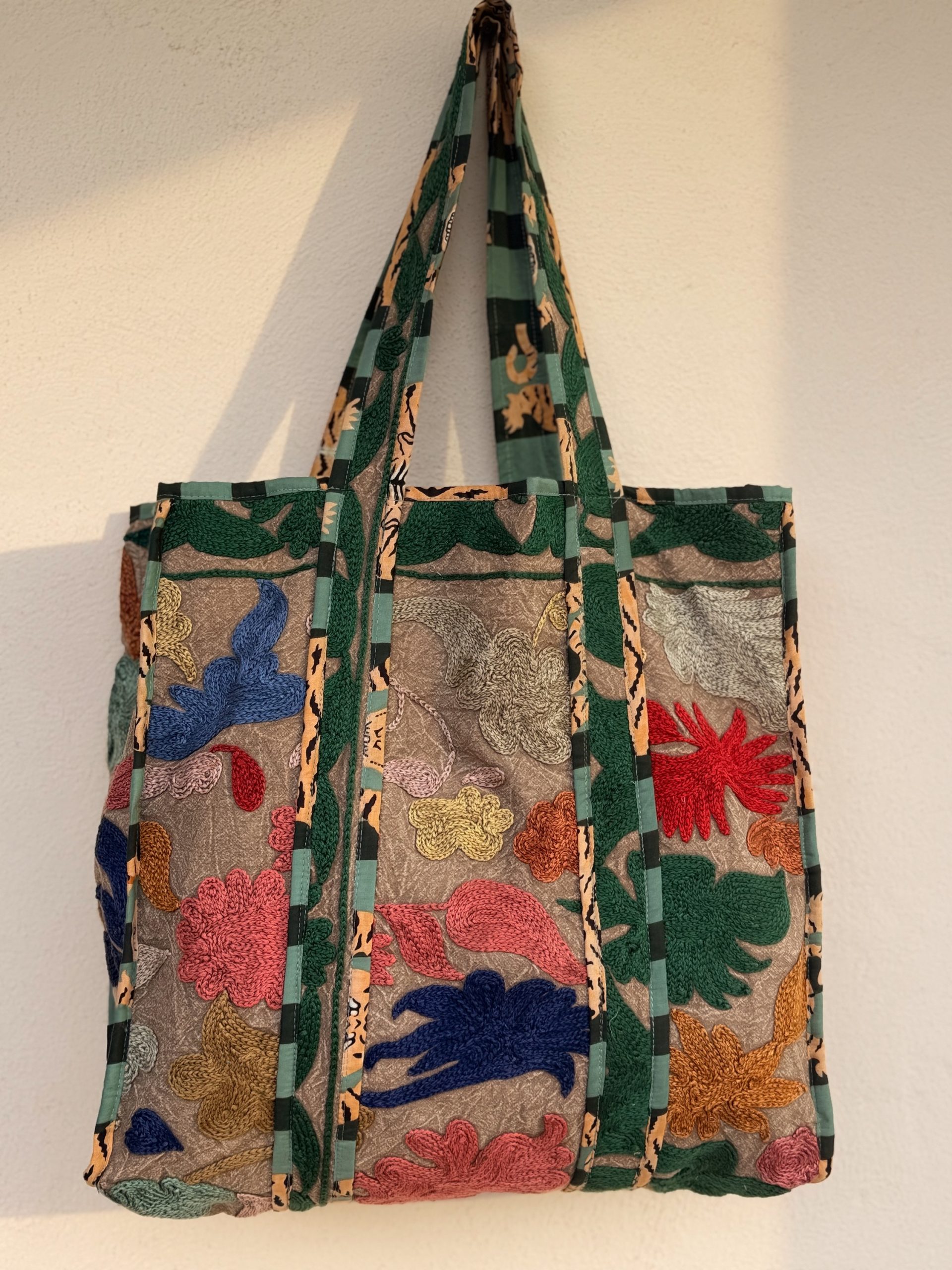Suzani bag hand embroidered with delicate traditional motifs that make each piece a unique design. Made of cotton fabric and inner lining for durability and practicality.