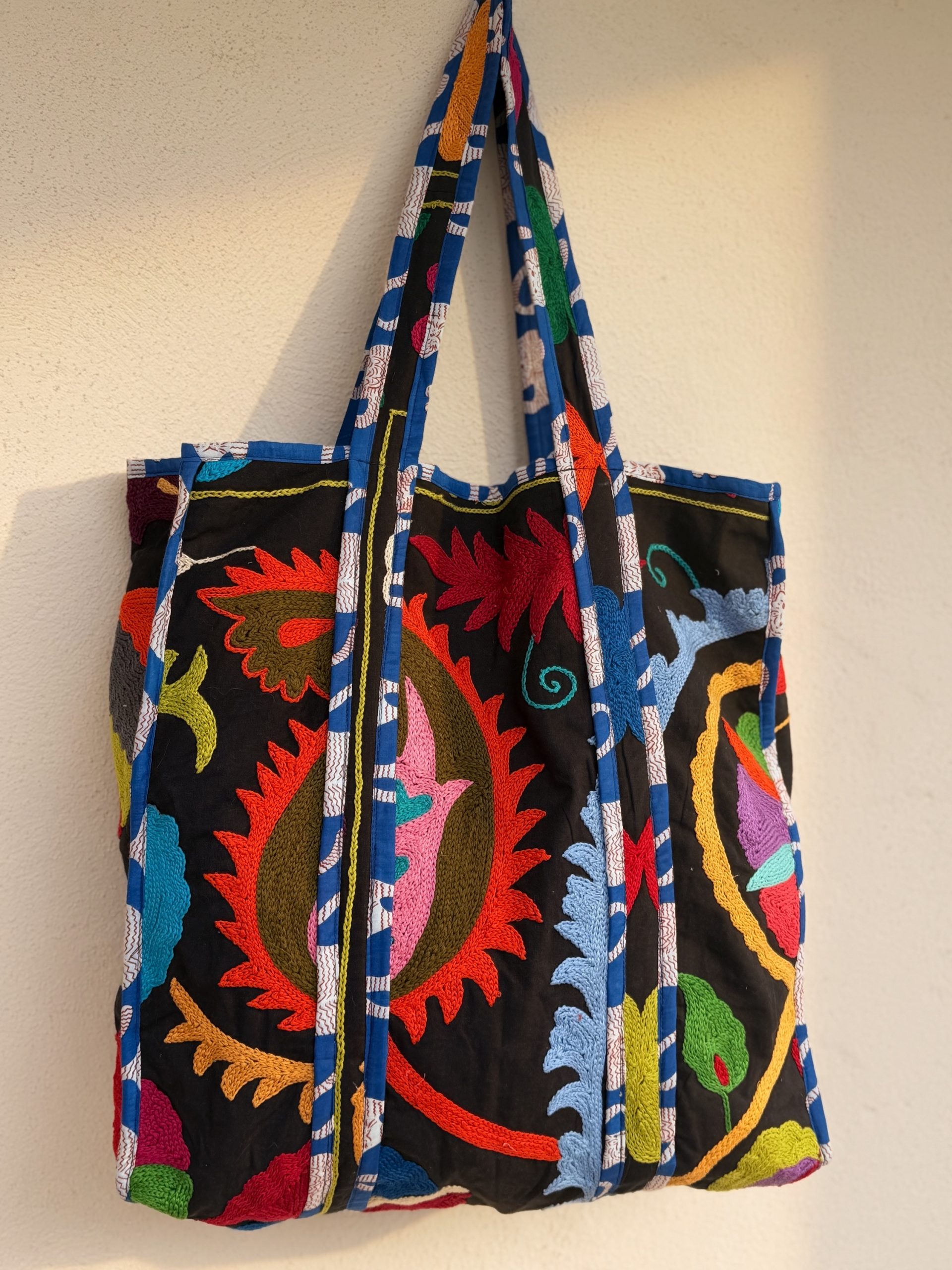 Suzani bag hand embroidered with delicate traditional motifs that make each piece a unique design. Made of cotton fabric and inner lining for durability and practicality.