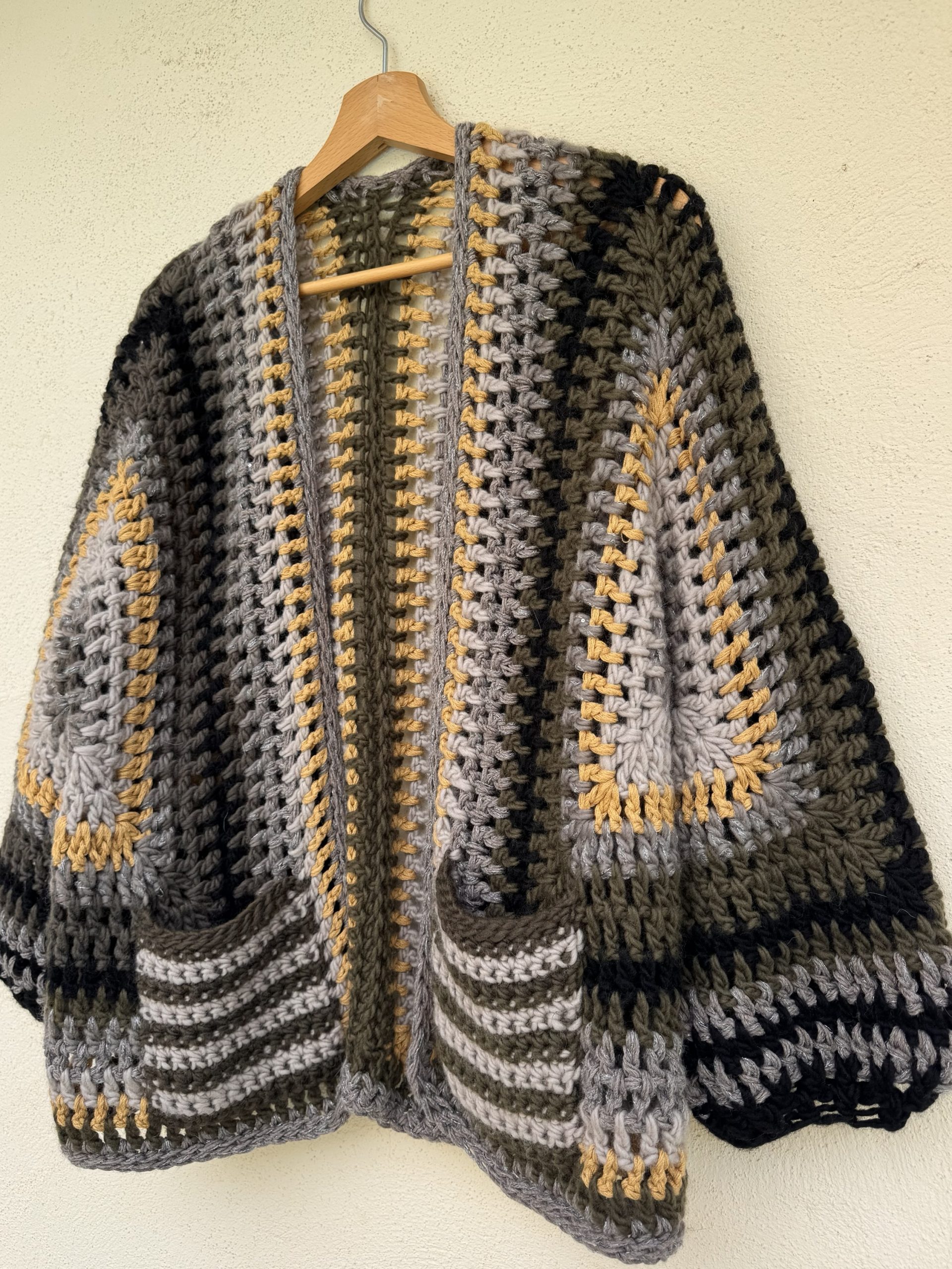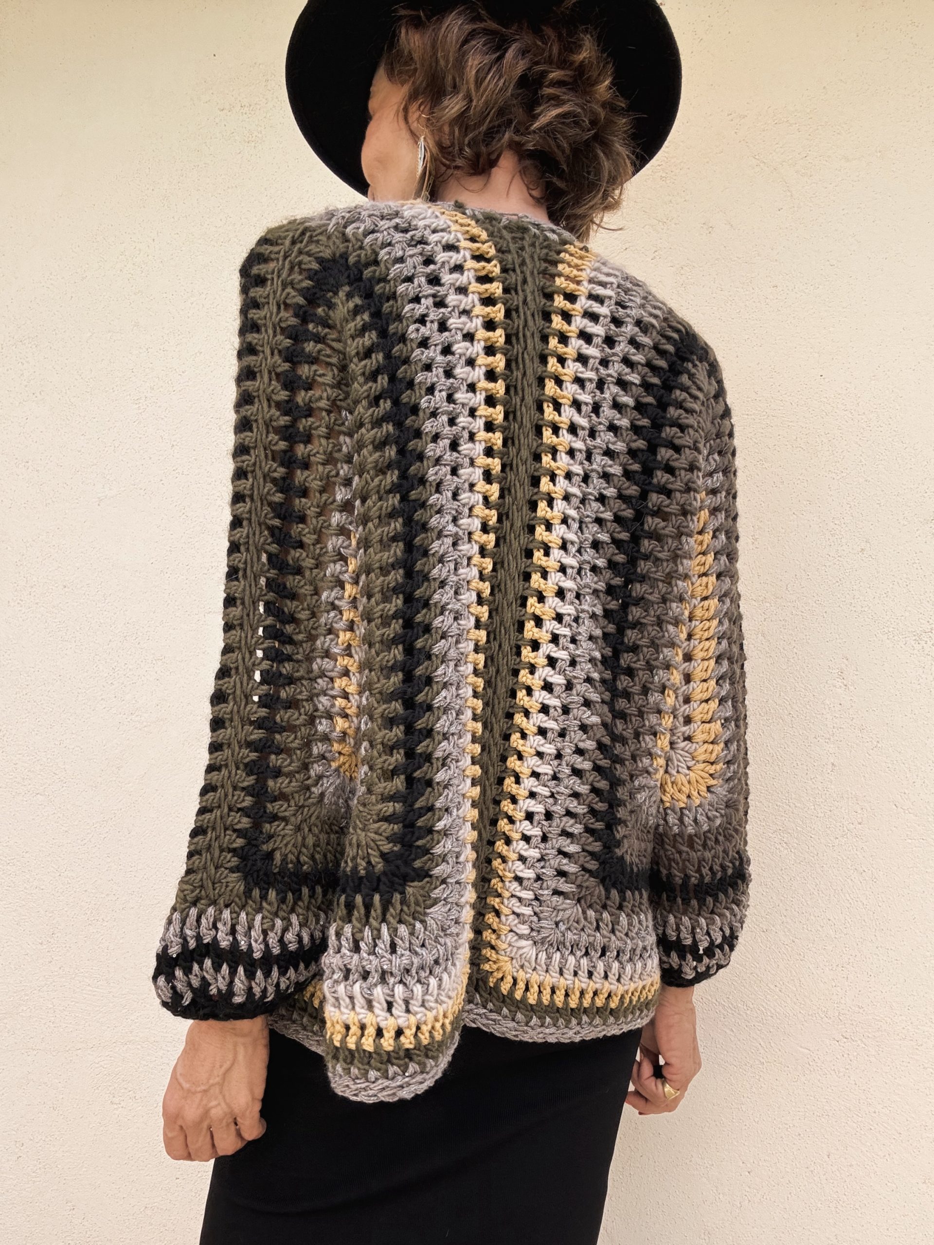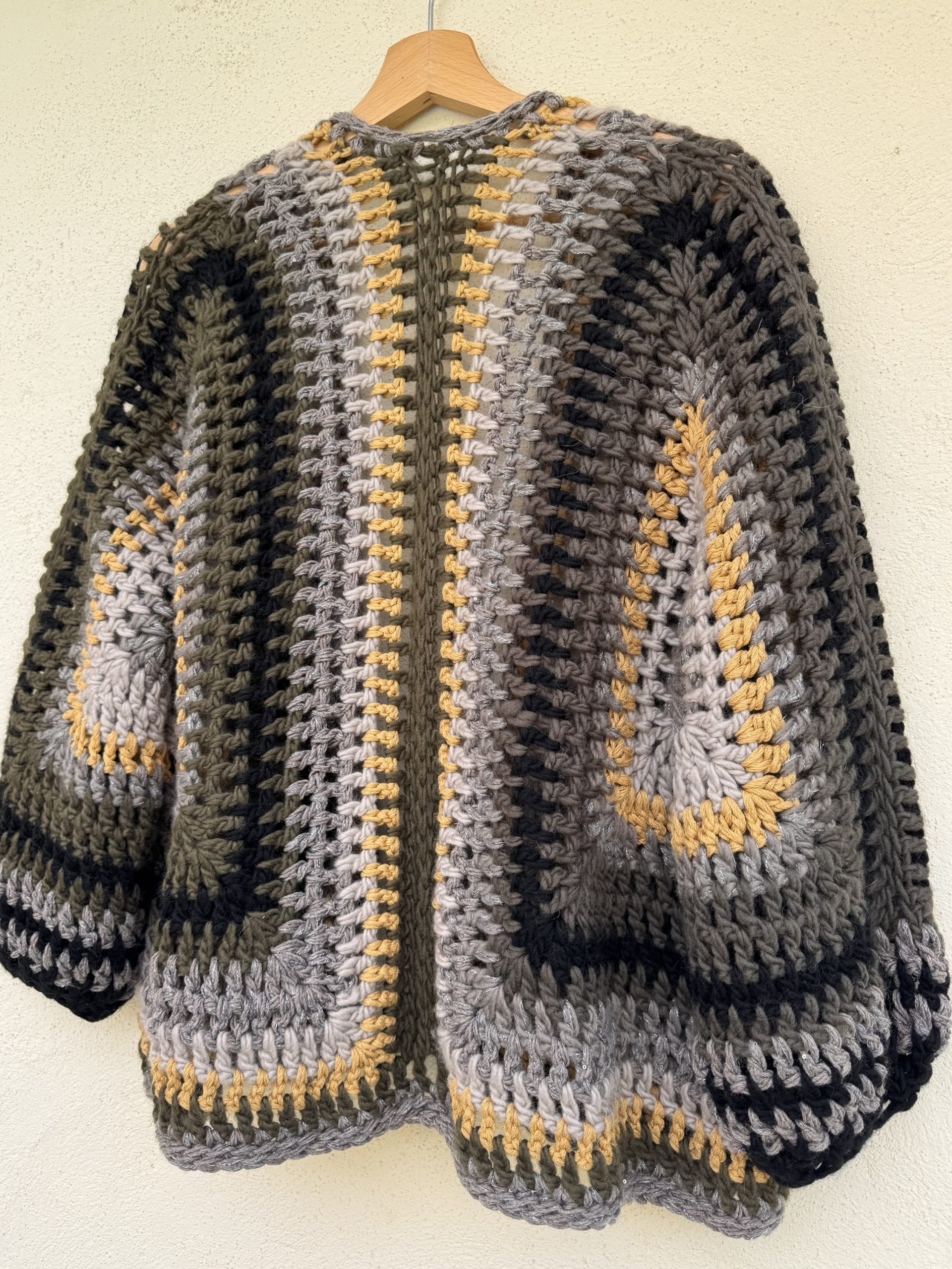 Handmade wool crochet cardigan. A warm and timeless piece, crafted with care and patience — perfect for cozy days and effortless boho looks. One size.