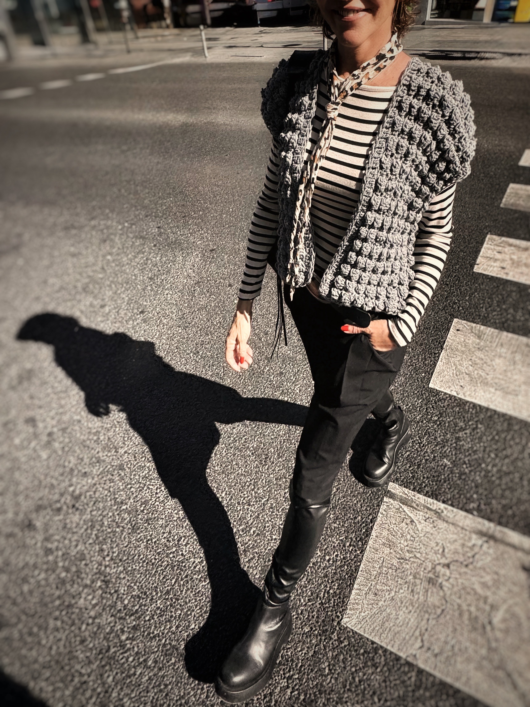 Chaleco tejido a mano en crochet con lana vegana. Una pieza artesanal con textura única, ligera y versátil, ideal para llevar sobre camisetas, vestidos o blusas. Su diseño abierto y sus puntos en relieve le dan un aire bohemio y artesanal, perfecto para el día a día o para dar un toque especial a tus looks de entretiempo. Talla única