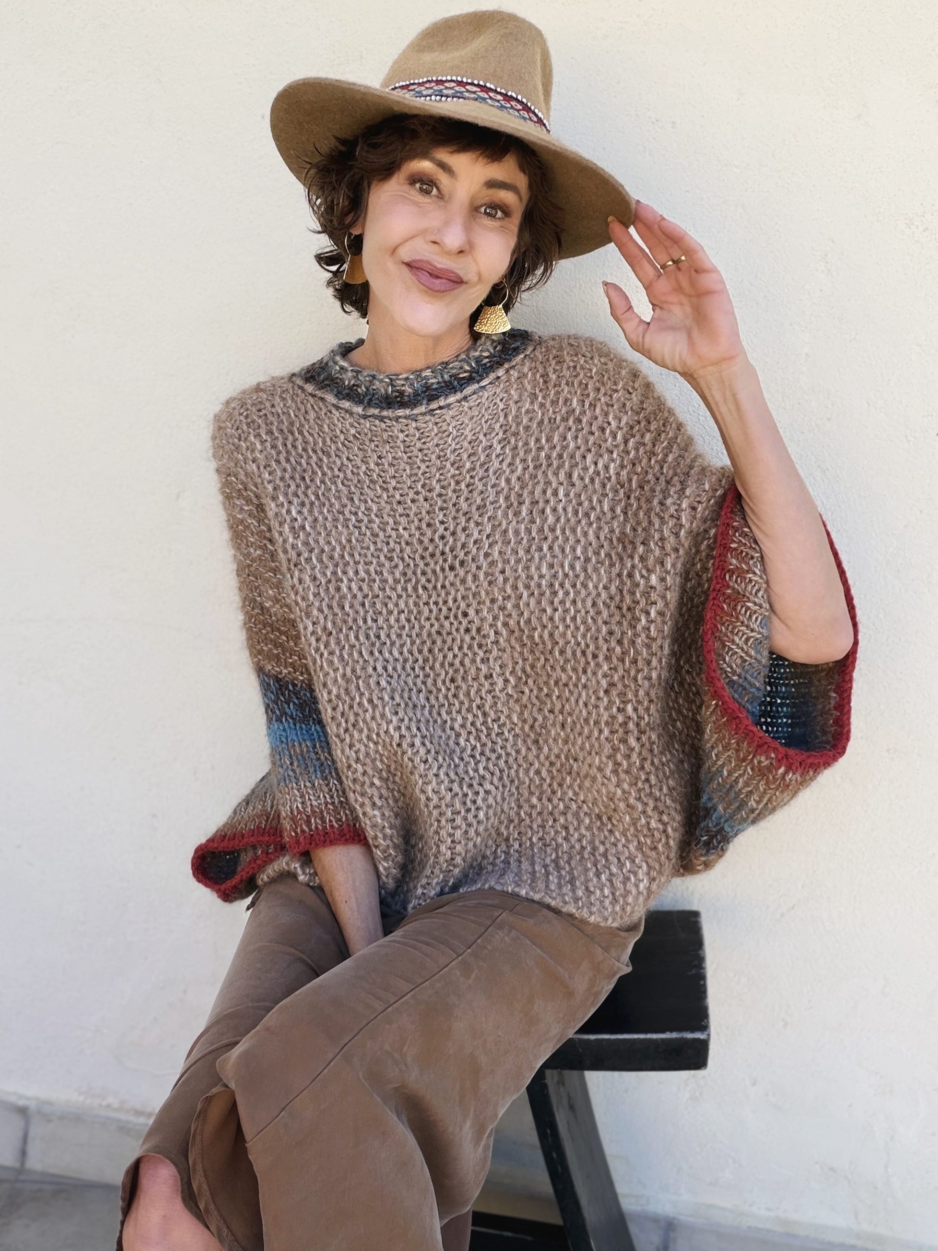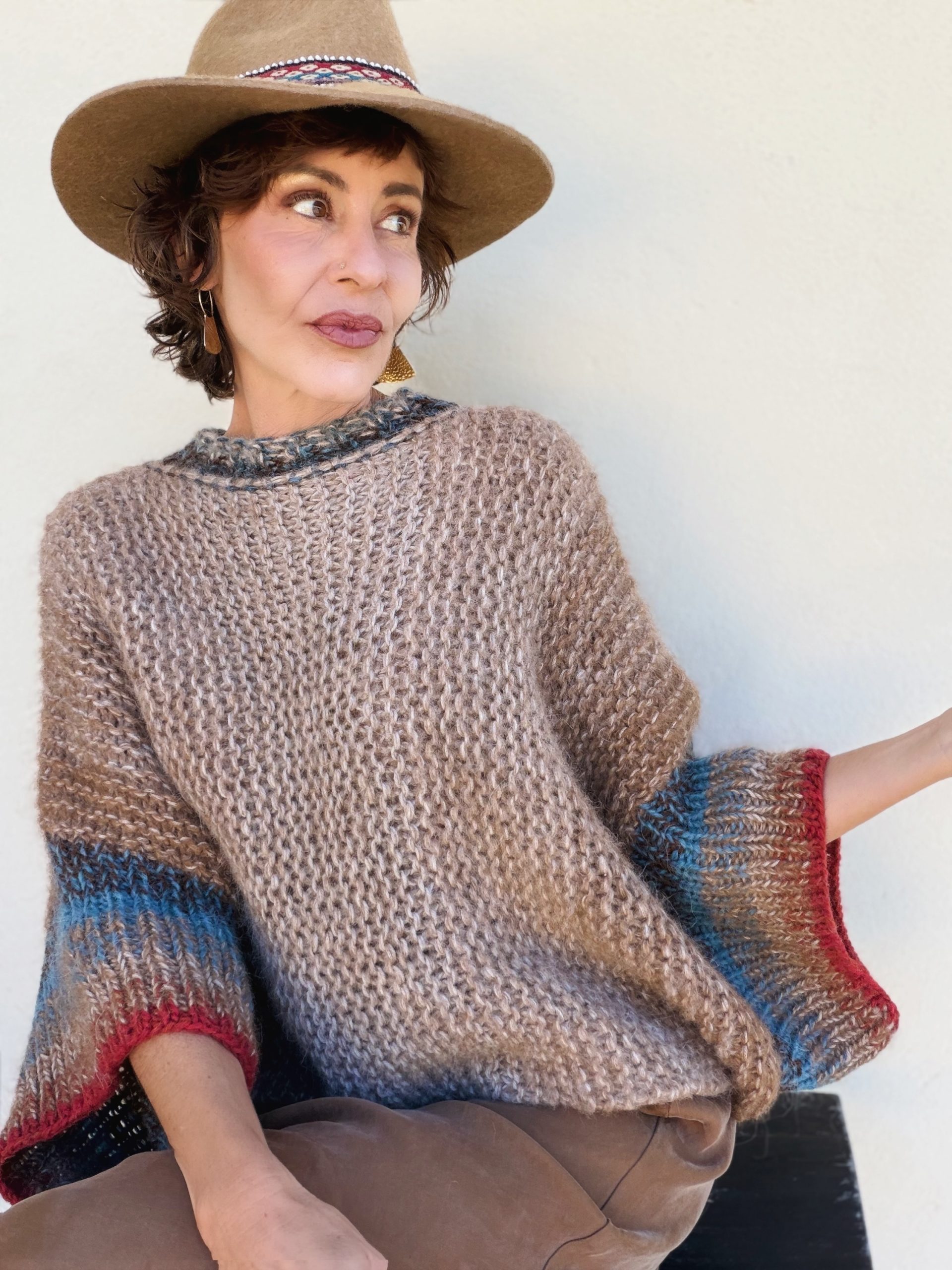 Suéter tejido a mano en lana de Alpaca. Talla unica.