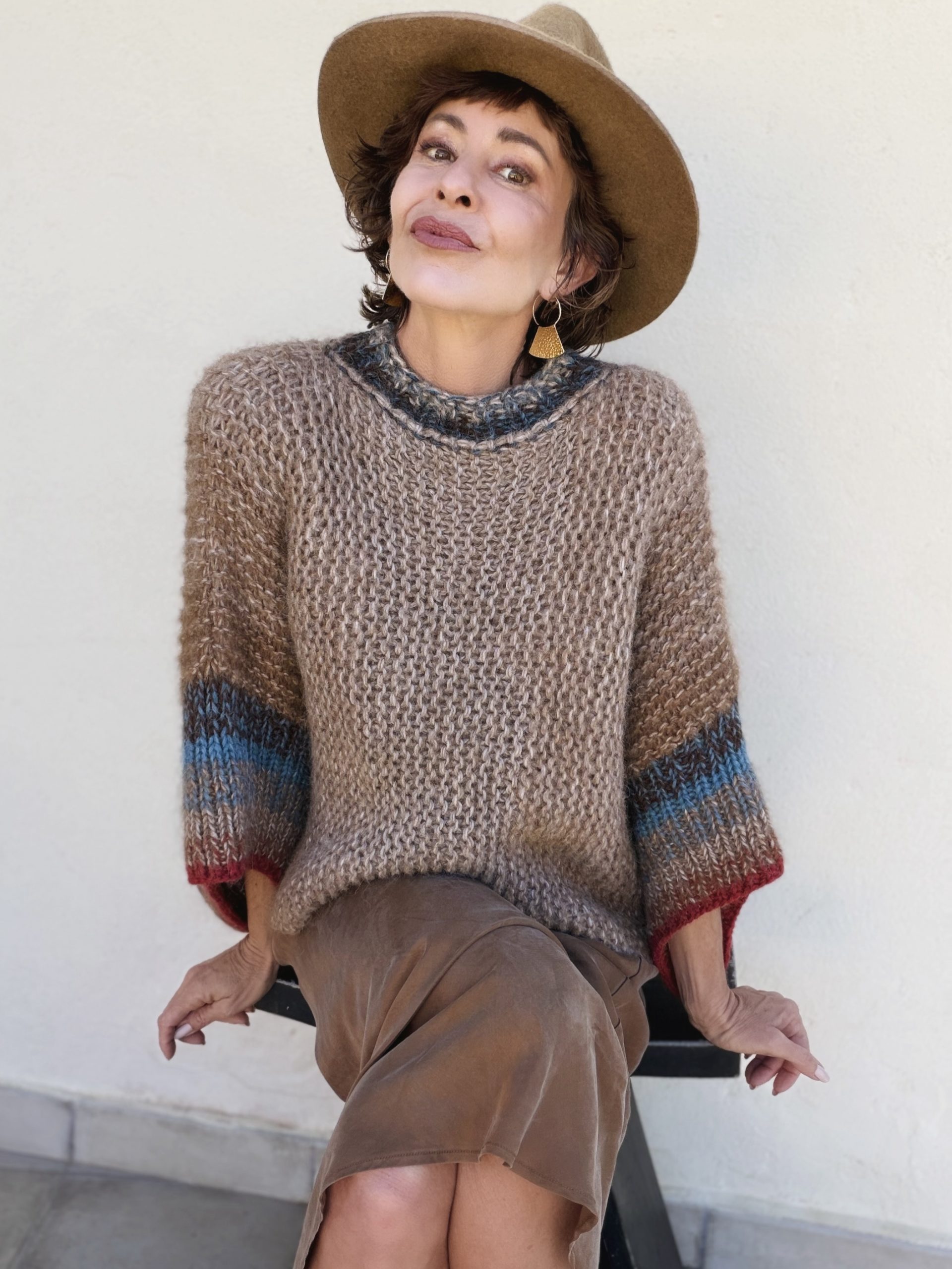 La alpaca es transpirable, cálida y delicada con la piel, ideal para el uso diario en los meses fríos. Cada suéter es una pieza única, creada con cuidado y respeto por los procesos artesanales.