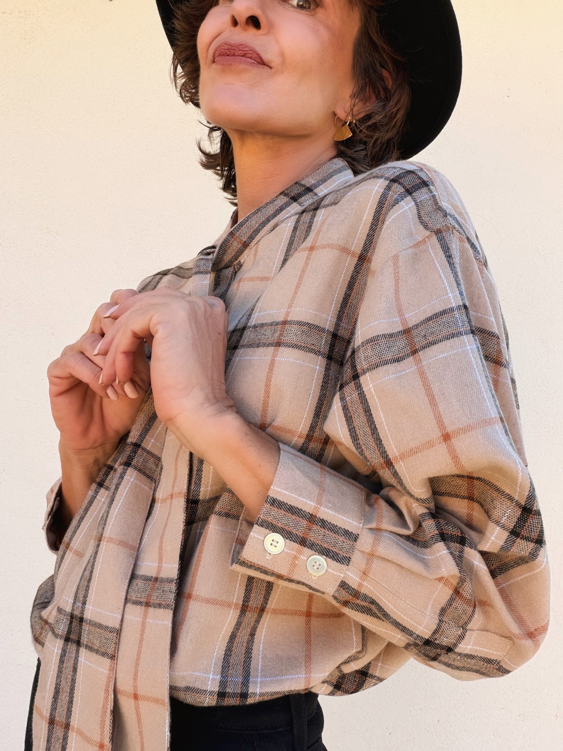 Los botones de nácar añaden un acabado delicado y artesanal, mientras que la manga ligeramente bombacha, rematada en puño, aporta volumen sutil sin perder comodidad.