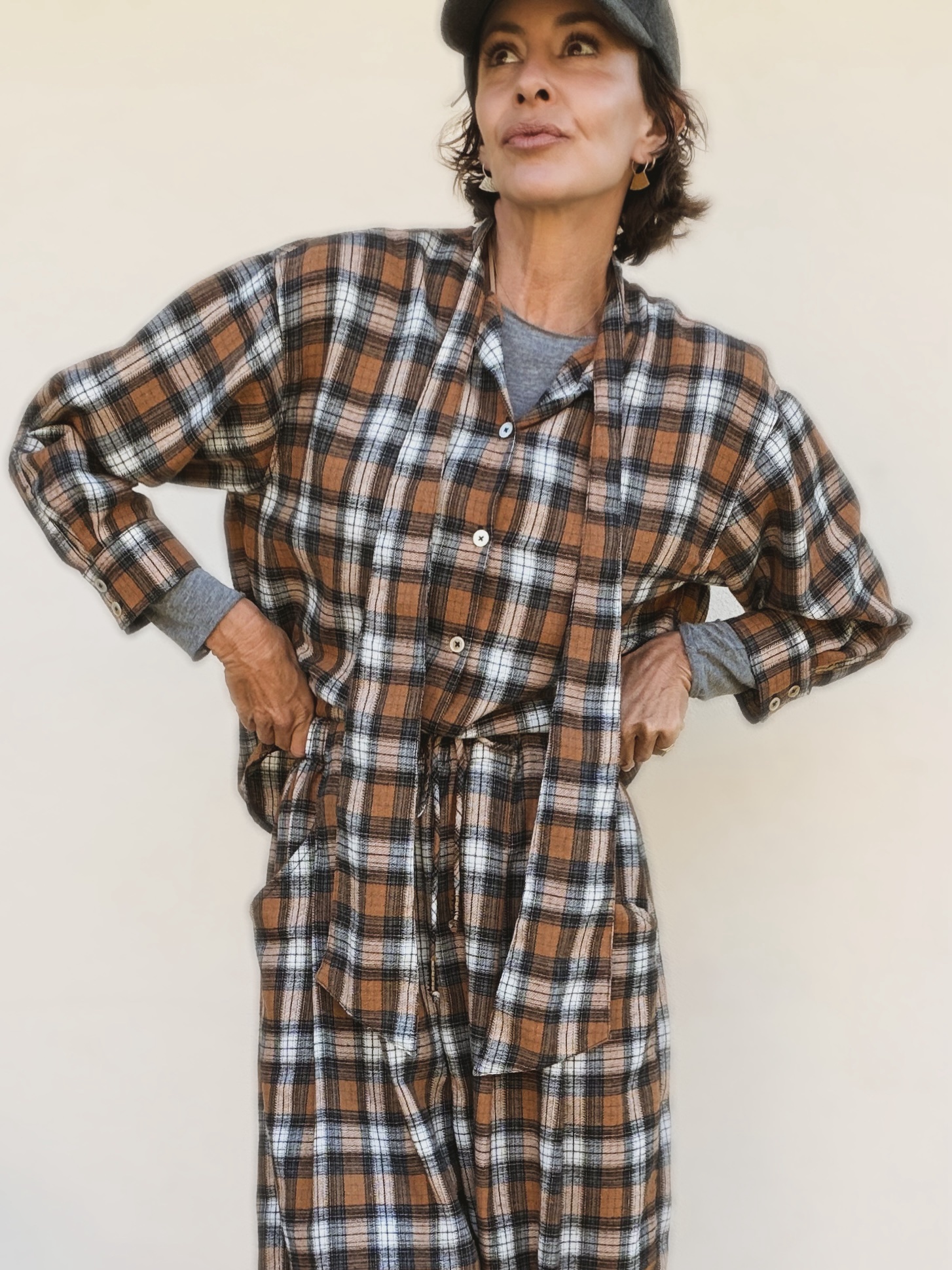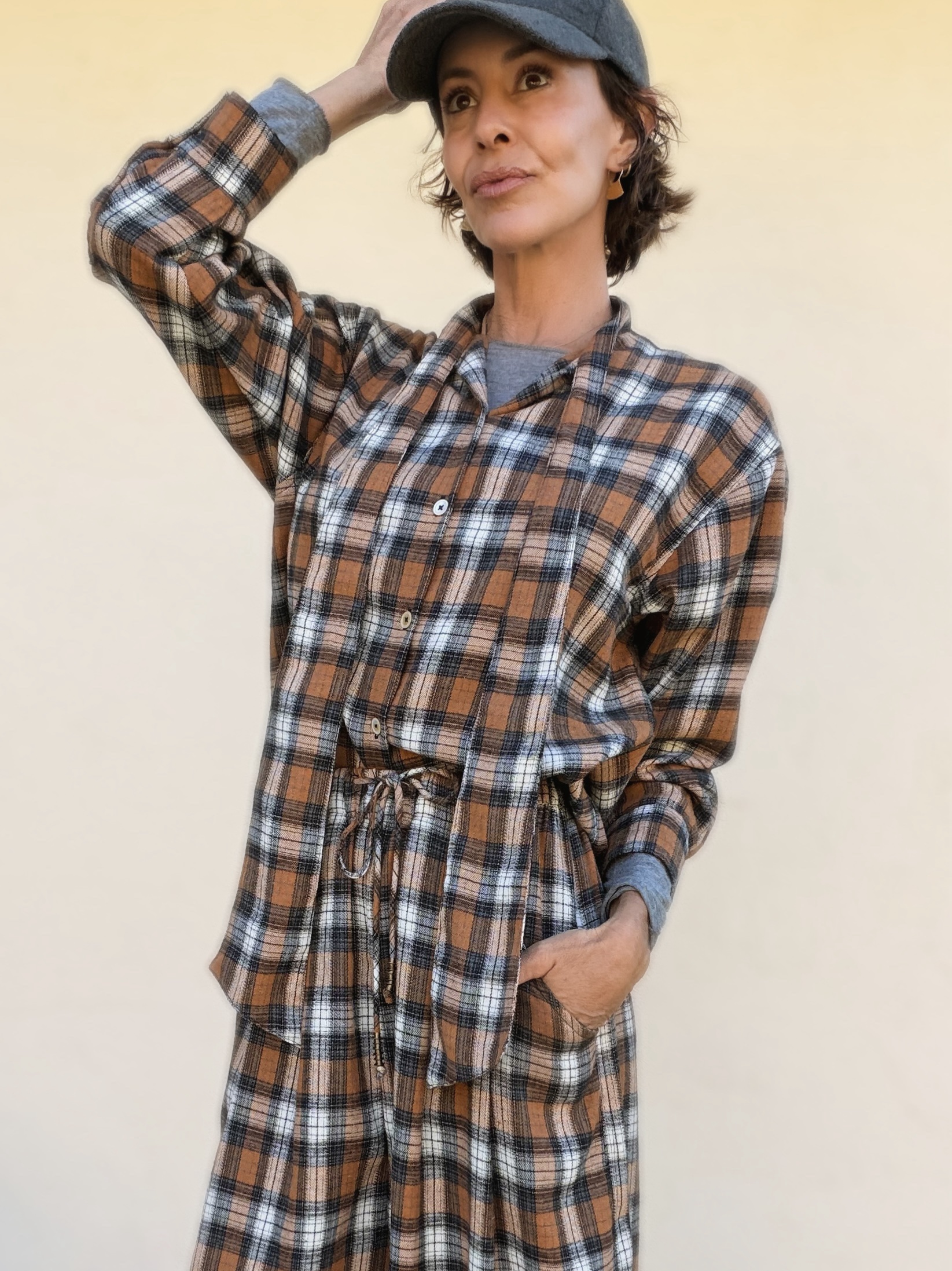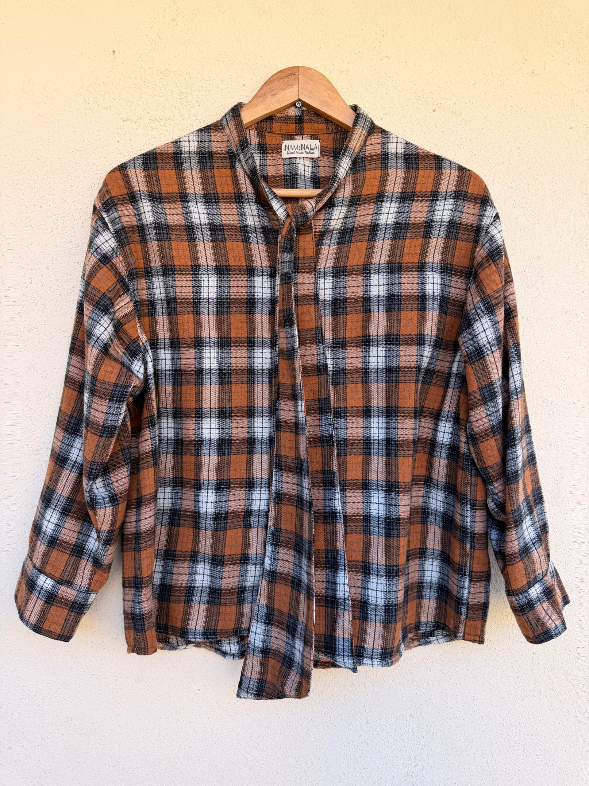 Camisa de algodón en talla única, diseñada para un ajuste relajado y favorecedor. Confeccionada en tejido suave y transpirable, presenta lazada frontal que permite regular la silueta y aporta un toque femenino y actual.